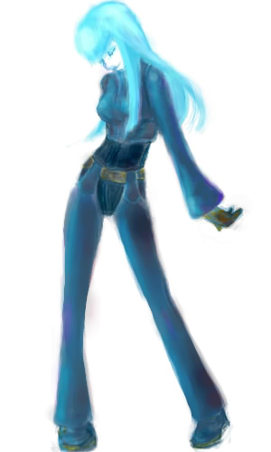 ネミッサ覚えて田のね!!確かにネミっぽいかも!!。 これは格ゲーのキャラで、THE KING OF FIGHTERS 2000から出てきたキャラでクーラ・ダイアモンドっつー名前だったと思います。でもやってないし使ってない…ワタクシ間合いの無い格ゲーは鑑賞専門で(苦笑)でも一度描いてみたかったのよぅ。覆い焼き、今回この絵では一回も使ってないよー。同系色の明るい色を上から入れてるだけだよ? そういや覆い焼きって手があったの忘れてたわ。前はよく色飛ばすのに多用してたよvv